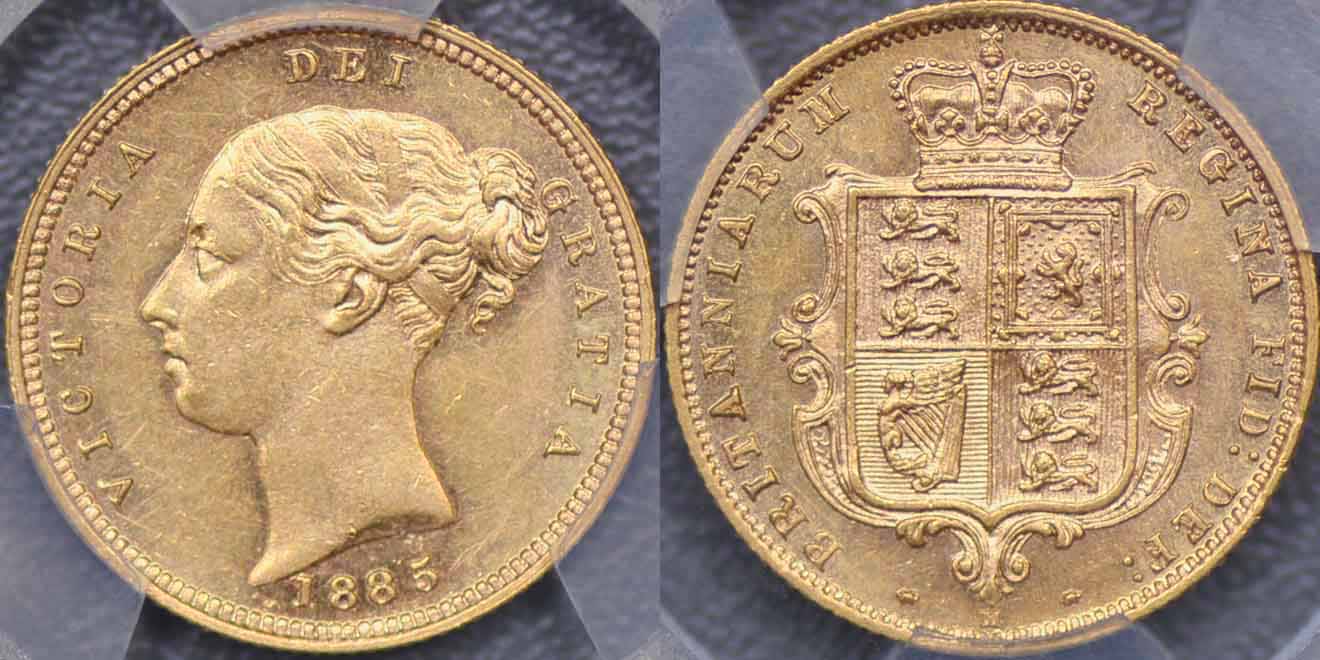 Australia, 1885 Melbourne Half Sovereign - Grades PCGS AU55.