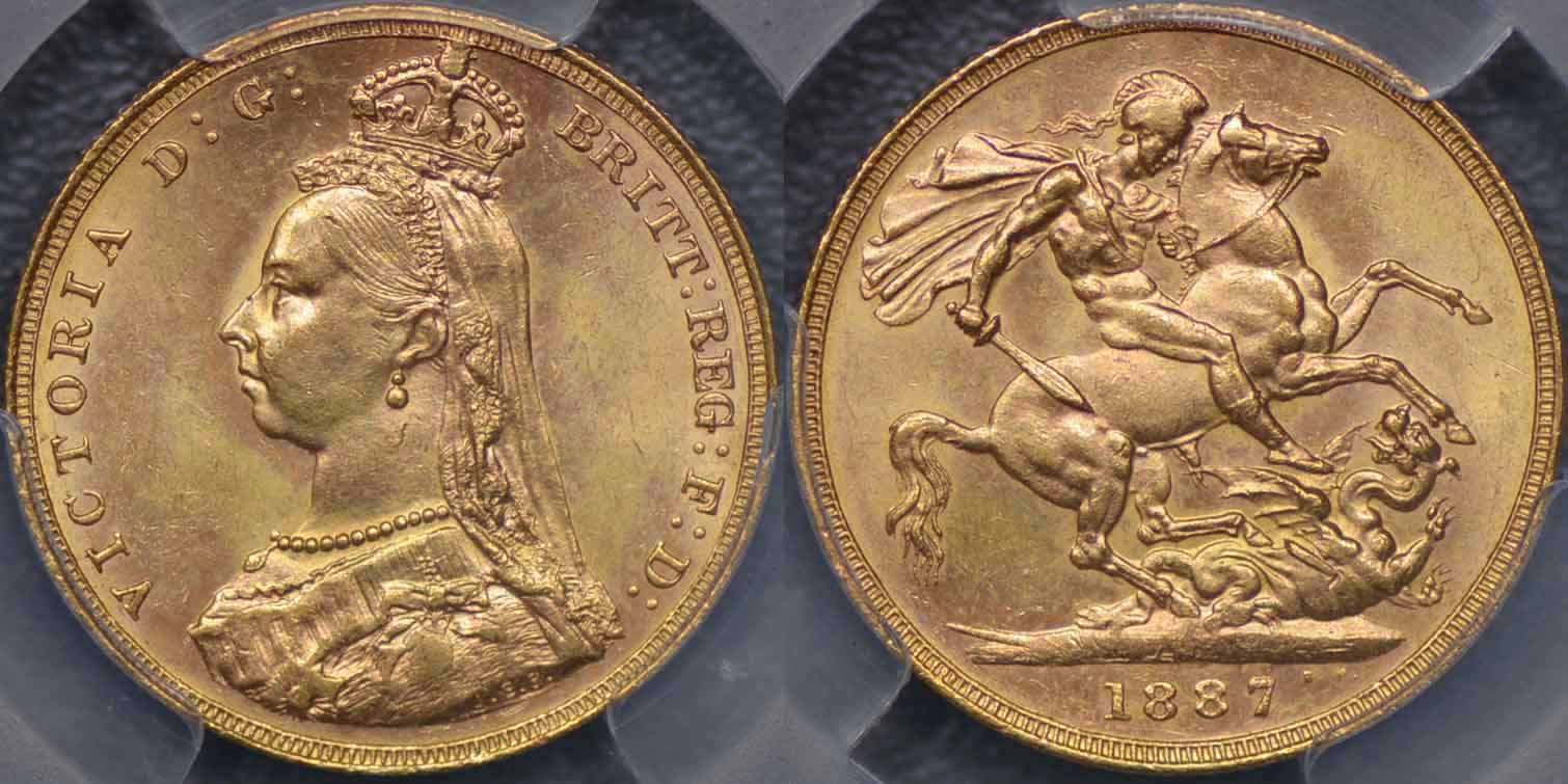 Australia, 1887 Melbourne Jubilee Head Sovereign - Grades PCGS MS63.