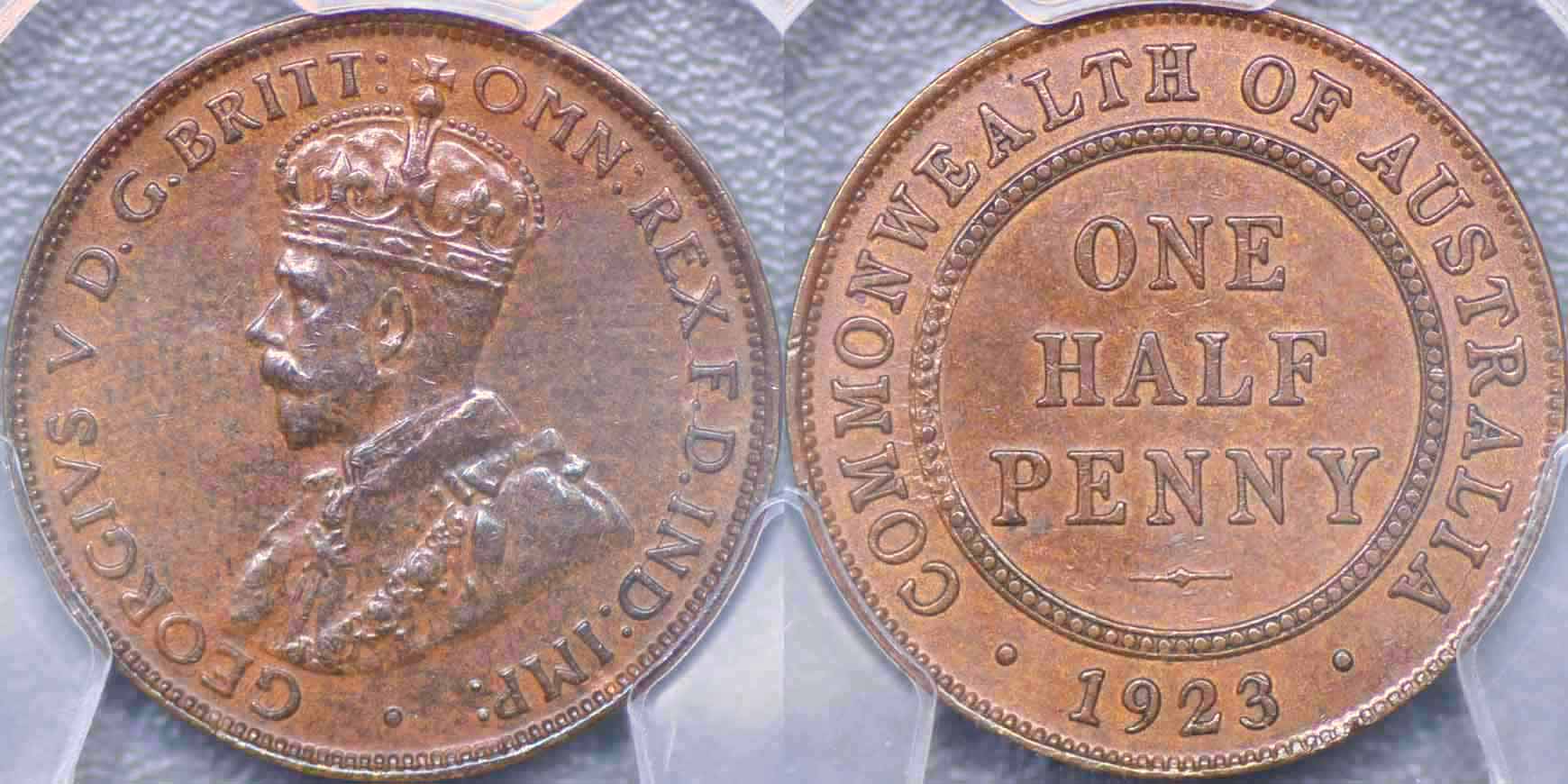 Australia, 1923 Halfpenny - Grades PCGS AU58.