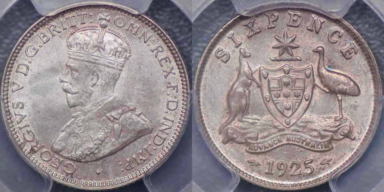 Australia, 1925 Sixpence - Grades PCGS MS65.