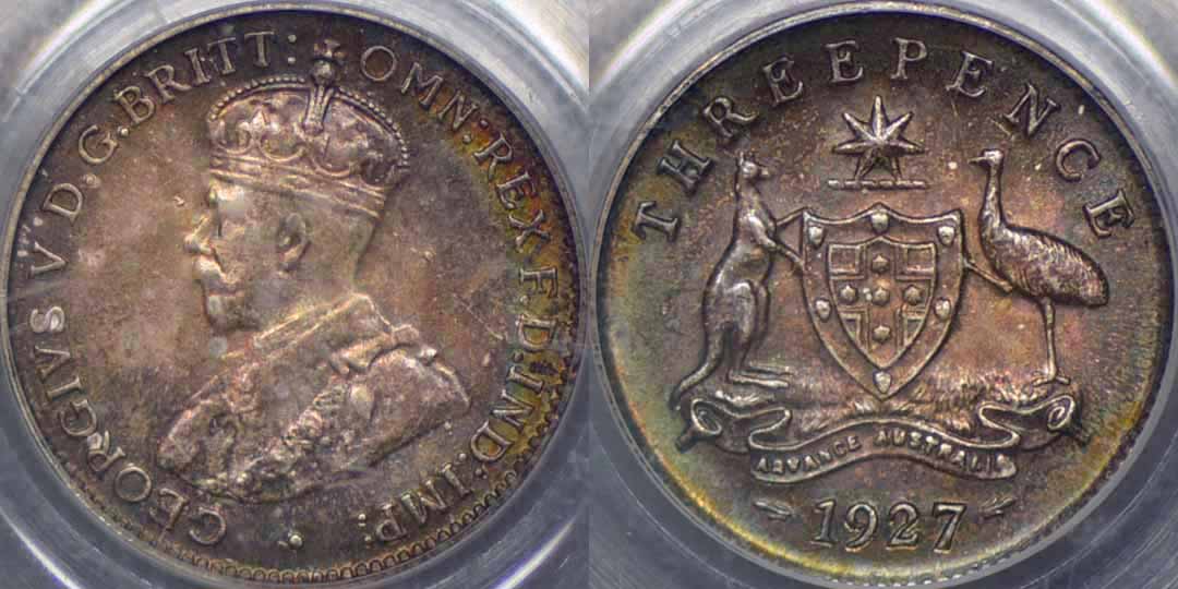 Australia, 1927 Threepence - Grades PCGS MS64.