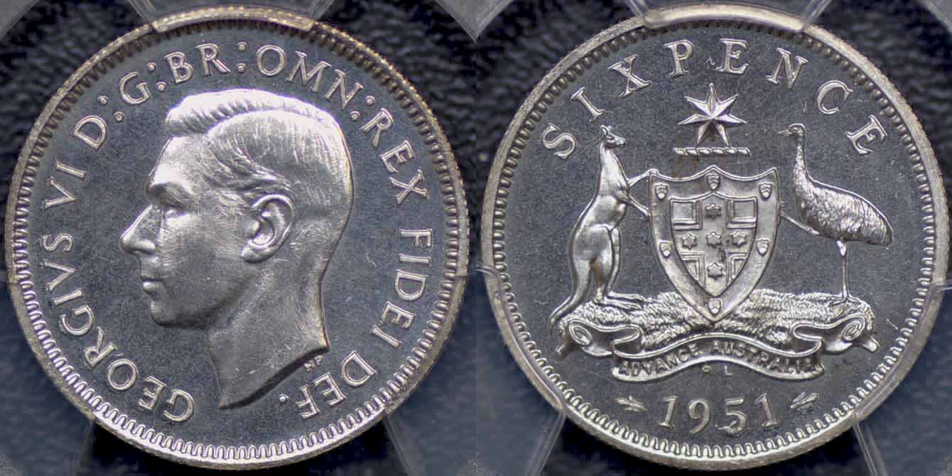 Australia, 1951 London Proof Sixpence - Grades PCGS PR65.