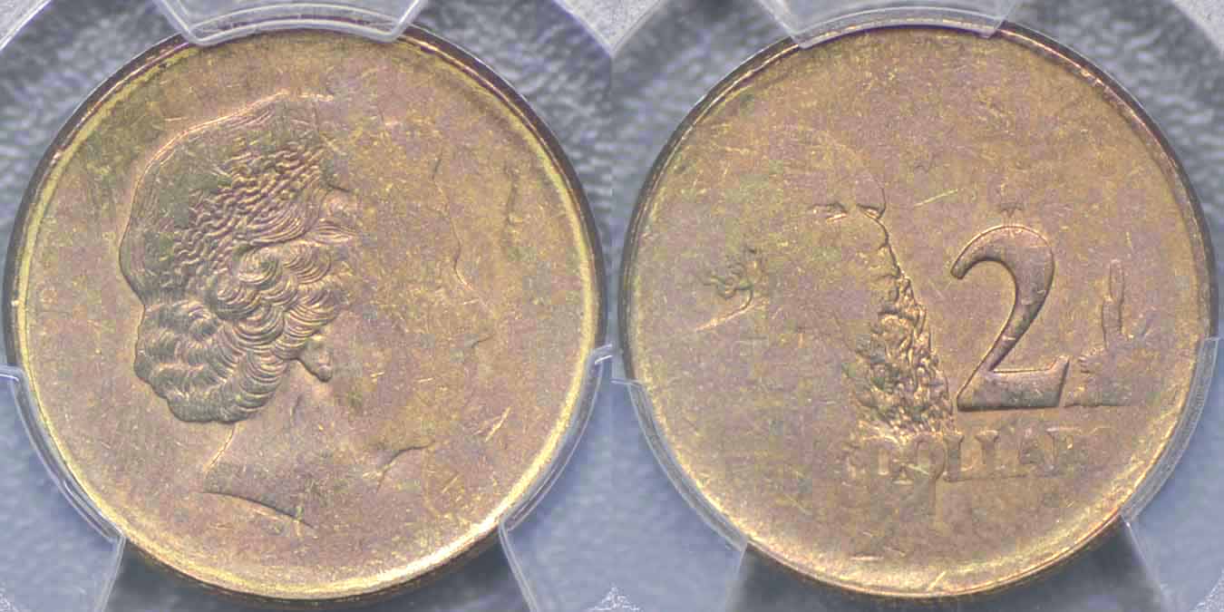 Australia, Two Dollar struck on Euro ten cent planchet - Grades PCGS AU55.